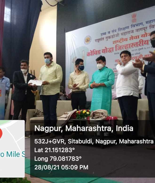 Covid Yoddha Award to Mr. Sarang Jambhule 28-08-2021